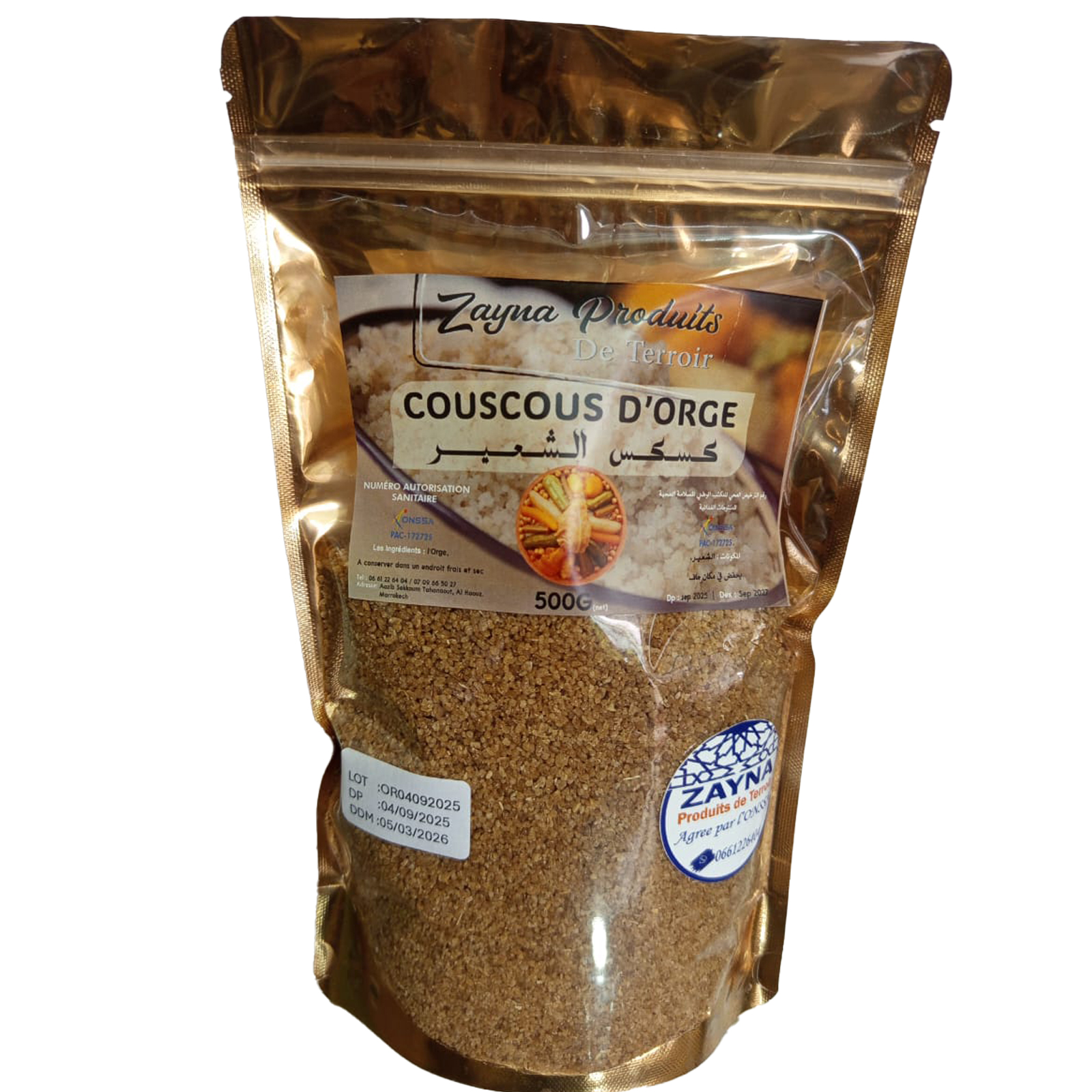Le couscous d’orge est un produit traditionnel authentique, élaboré à partir d’orge soigneusement sélectionnée et transformée selon un savoir-faire artisanal transmis de génération en génération. Apprécié pour sa texture légèrement rustique et son goût riche, il constitue une alternative saine et nutritive aux couscous classiques.